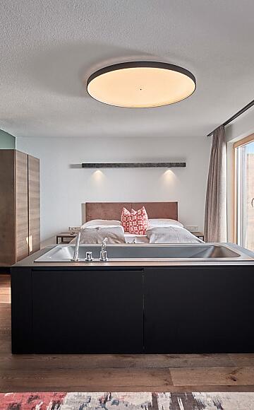 Neu renovierte Suite im 4. Stock. Großzügige Suite zum Erholen und Entspannen. Genießen Sie die komfortable Suite mit viel Platz und Ihrer privaten Wohlfühloase. Lassen Sie Ihre Seele baumeln und genießen Sie bei einem wohltuenden Bad, den Blick auf unsere fantastische Bergwelt. Minibar