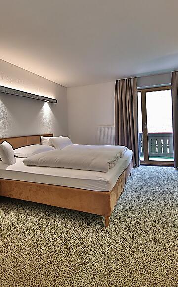 Enjoy moments of wellbeing in the double room Wiesenblick Superior from your balcony with view to the courtyard.